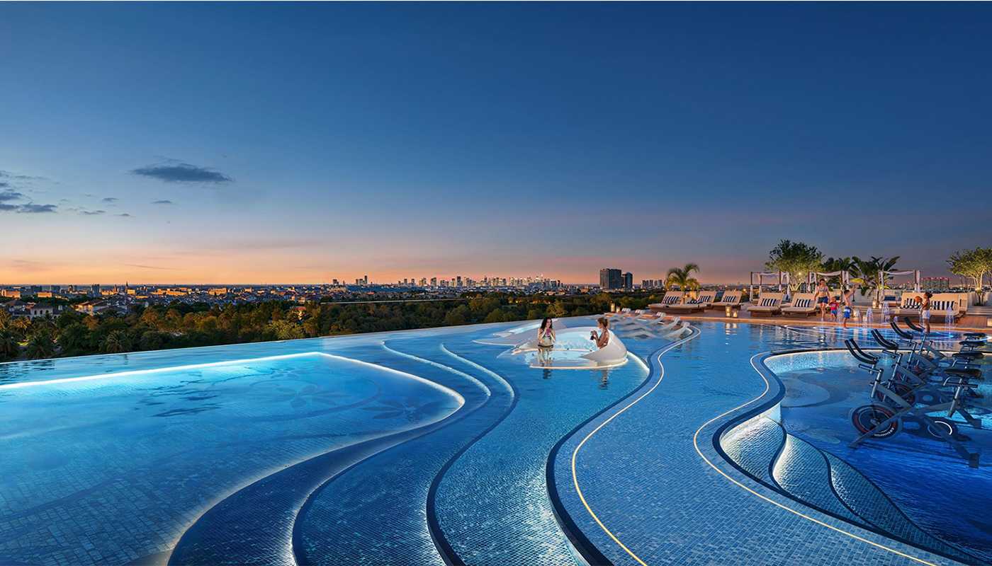 A floating sky-blue gem of an infinity pool allows you to live like you're at a resort in the middle of the city. You can work out at the aquatic gym, which has water-resistant fitness equipment, and take part in weekend pool parties at the designated pool party area. The façade offers a state-of-the-art indoor gym, an outdoor workout deck with basketball and badminton courts, and a yoga deck with greenery to accommodate all fitness needs.
