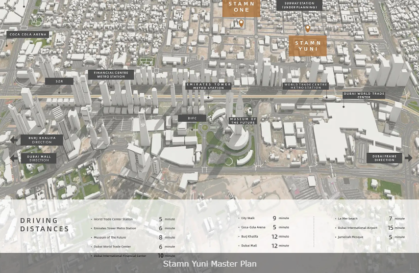 Developed by Stamn Development, Stamn Yuni is the second residential gem located in the center of Jumeirah Garden City, Dubai. It offers high-end studios and apartments with one or two bedrooms. This magnificent project offers the ideal fusion of style and utility, reimagining contemporary urban life. The homes are thoughtfully constructed to suit the tastes of both savvy investors and today's residents. In one of Dubai's most sought-after areas, this complex is a symbol of refinement thanks to its striking architecture and finely designed interiors.