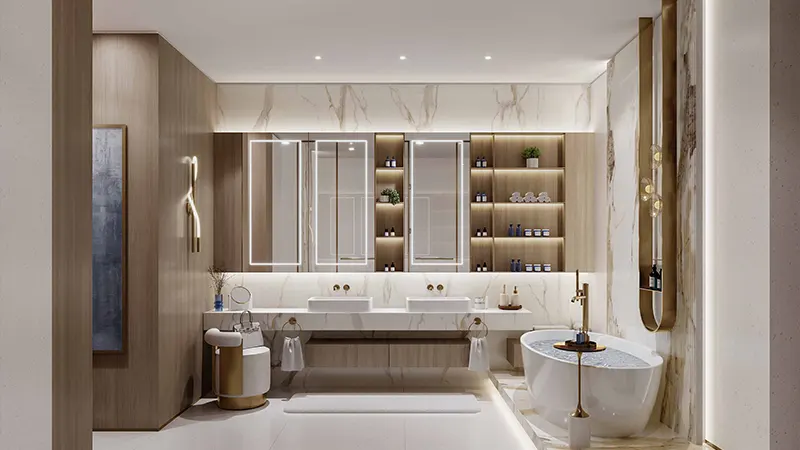 At Sunset Bay by Imtiaz, each apartment is tastefully designed and radiates elegant utility. A warm and welcoming ambiance is created by the interiors' sophisticated, neutral color scheme, which is enhanced by gold accents and premium finishes. With open-plan layouts that seamlessly blend the kitchen, living, and dining rooms for optimal comfort and flow, these one, two, and three-bedroom apartments are made for modern living.