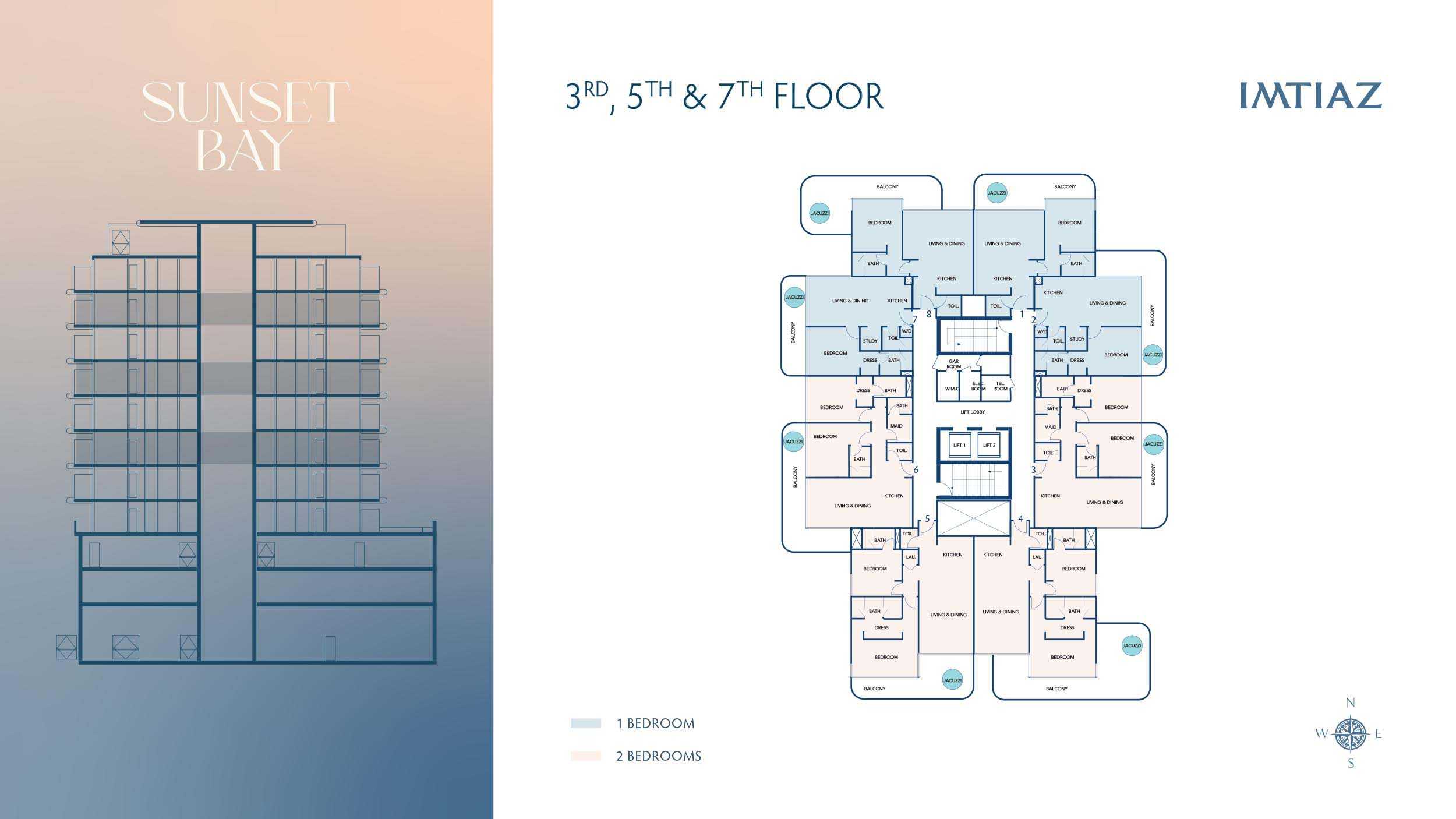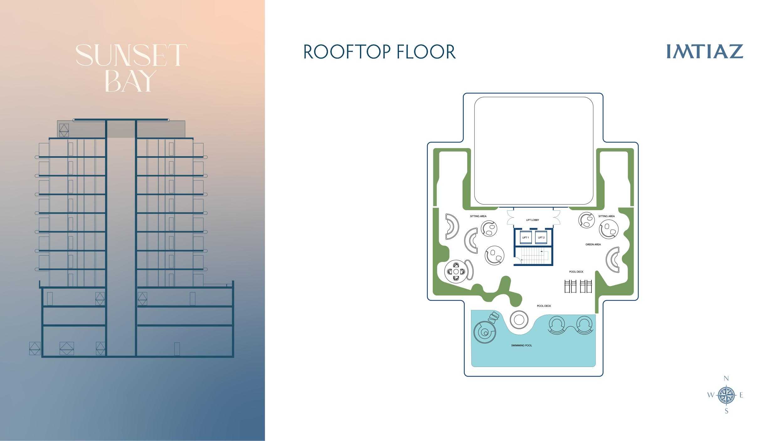 Sunset Bay captures the golden tones of its eponymous sunset and the soft beat of the waves. Every moment feels like a holiday, whether you're sipping coffee in the morning while taking in views of the azure waters or watching the sun set in the evening. With only eight stories of units, two platform levels, and a thoughtfully planned rooftop refuge, this property, which was designed with peace in mind, provides a small and low-density living experience.