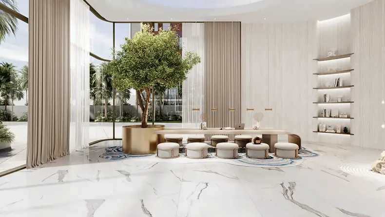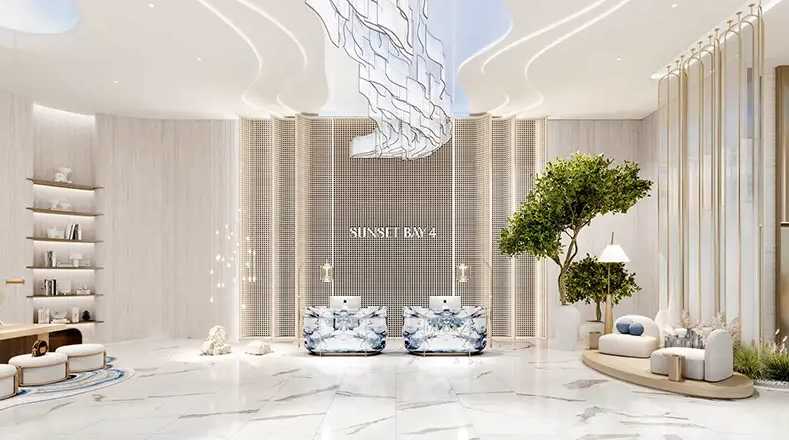 Sunset Bay 4 features a sleek, modern façade inspired by Dubai’s maritime heritage and island topography. Designed with clean lines, glazed exteriors, and coastal elements, the building exudes both elegance and simplicity. The architecture prioritizes sustainable design, incorporating smart technologies, energy-efficient systems, and eco-friendly materials. The structure offers visual transparency, connecting indoor and outdoor living through expansive glass and breezy balconies.