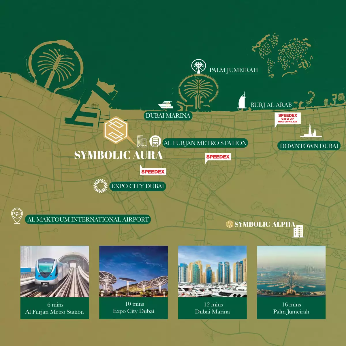 Speedex Group's residential complex, Symbolic Aura at Al Furjan, offers a high-end selection of 2.5 and 3-bedroom homes in Dubai. Enter a world of unmatched sophistication created to reinvent the idea of high-end luxury living with flawless modern architecture and tranquil surroundings that uplift everyone. This is your personal haven of serenity, where luxurious living is encircled by verdant surroundings.