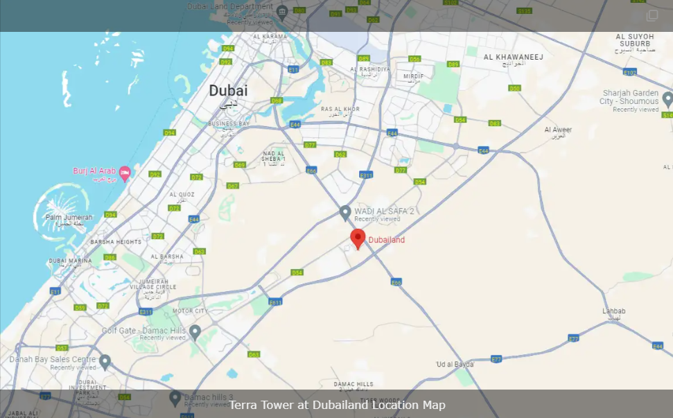 Terra Tower provides a unique, peaceful suburban living together with easy access to the city's downtown. An area that is vibrantly blended with leisure and lifestyle, Dubailand offers a variety of theme parks, shops, and family-friendly attractions. The community's growing array of facilities, which includes shopping malls, upscale dining establishments, and entertainment venues, will be advantageous to Terra Tower.