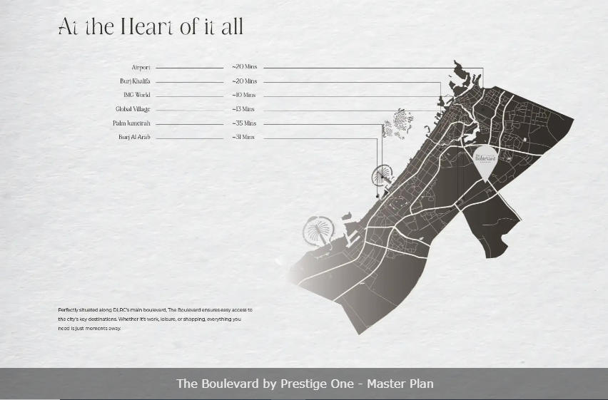 Nestled within DubaiLand Residence Complex in Wadi Al Safa 5, The Boulevard by Prestige One enjoys a highly enviable position in one of Dubai’s quickly emerging suburban gems. Seamlessly connected via a major artery, residents benefit from swift access to Al Khail Street, Tecom, and Al Qudra Road. A short drive takes you to vibrant destinations like Motor City, Mall of the Emirates, and IMG Worlds of Adventure—ideal for family outings, shopping, entertainment, and business engagements.