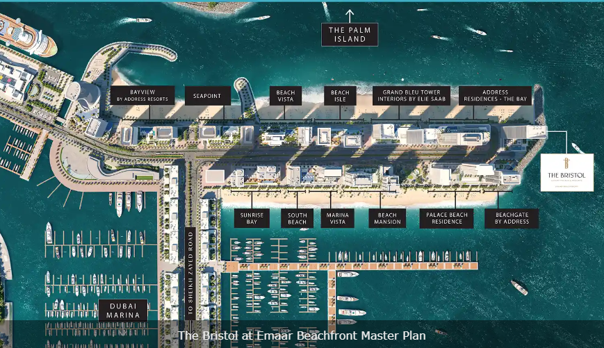 Ideally located within Emaar Beachfront, The Bristol offers the perfect balance between tranquil island-style serenity and effortless connectivity to Dubai’s most vibrant destinations. Situated in Dubai Harbour, the UAE’s premier maritime hub, residents enjoy proximity to world-class leisure, dining, and entertainment, all while surrounded by peaceful coastal beauty.