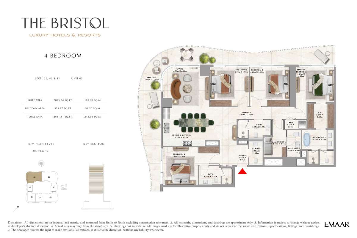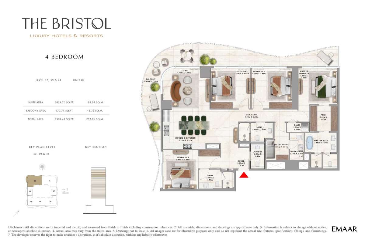 The Bristol Luxury Hotels & Resorts at Emaar Beachfront stands as a new icon of refined coastal living, presenting an exclusive collection of 1 to 4-bedroom apartments and ultra-rare 5-bedroom penthouses by Emaar Properties. Crafted for those who seek elegance, privacy, and sophistication, this prestigious waterfront address seamlessly blends contemporary design with uninterrupted views of the Arabian Gulf.