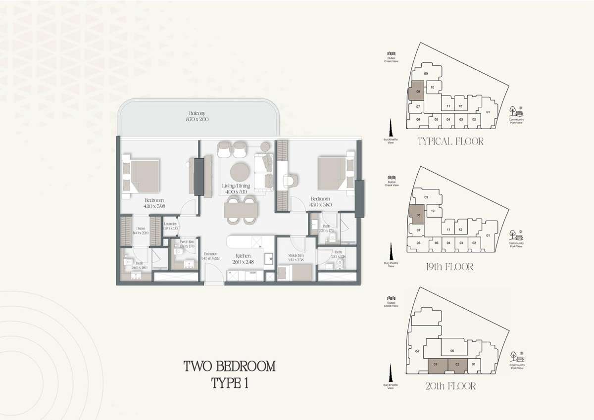 The Caden, which offers a carefully chosen selection of one- to four-bedroom apartments, sophisticated duplexes, and eye-catching penthouses, strikes a balance between the peacefulness of seaside life and the vibrant energy of Dubai. Every home is carefully planned to optimize comfort, natural light, and connectivity, providing occupants with a refined way of living that combines elegance and functionality.