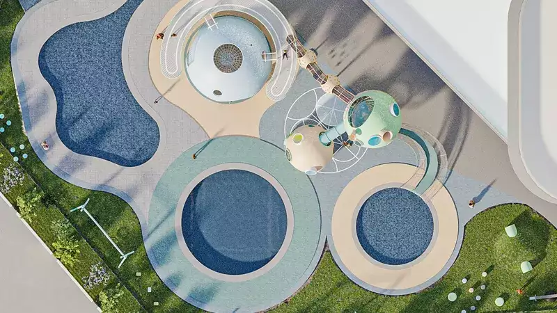 Wellness and fitness are prioritized with amenities like a health club, Jacuzzi, yoga room, open-air gymnasiums, and jogging tracks. Nature enthusiasts will find solace in the Organic Farm, Rainforest Retreat, Zen Garden, Dog Park, and Golf Simulator.