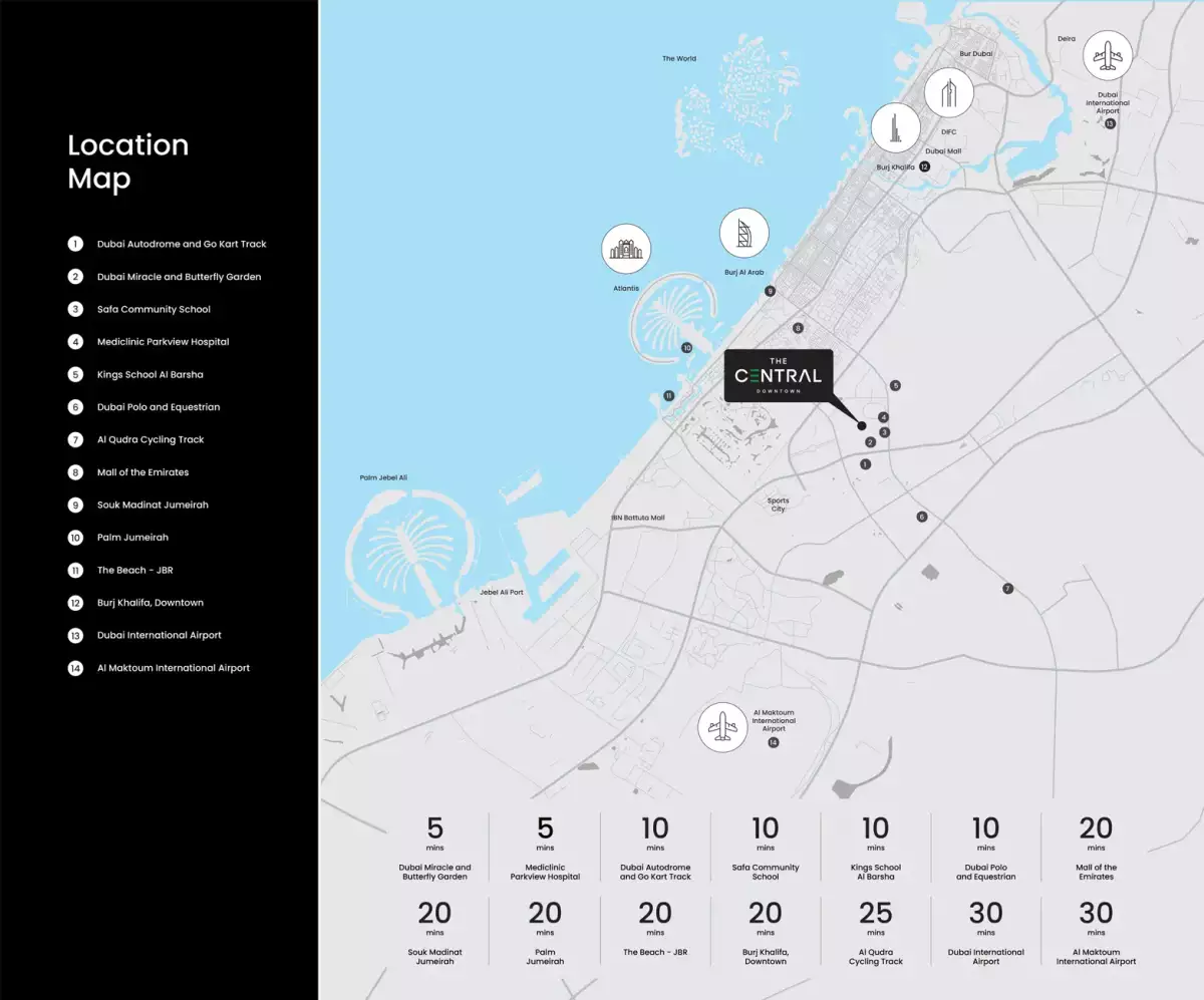 In the center of Arjan, Dubai, Aqua Properties' Central Downtown is the pinnacle of opulent living, offering exquisite studios and three-bedroom apartments. This multi-building complex, which spans a center plot of around 07 acres and consists of four different towers, A, B, C, and D, provides unmatched visibility and accessibility within the Arjan community.