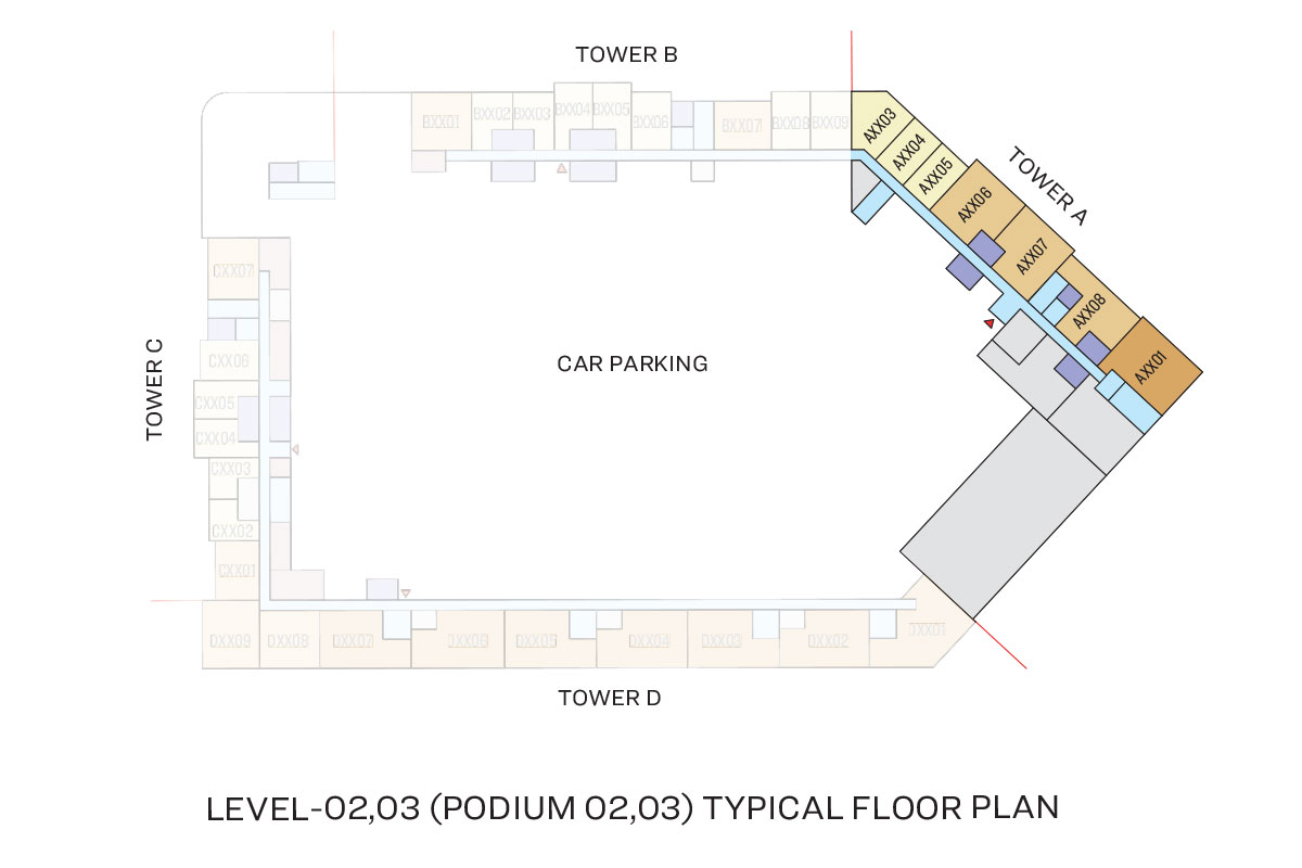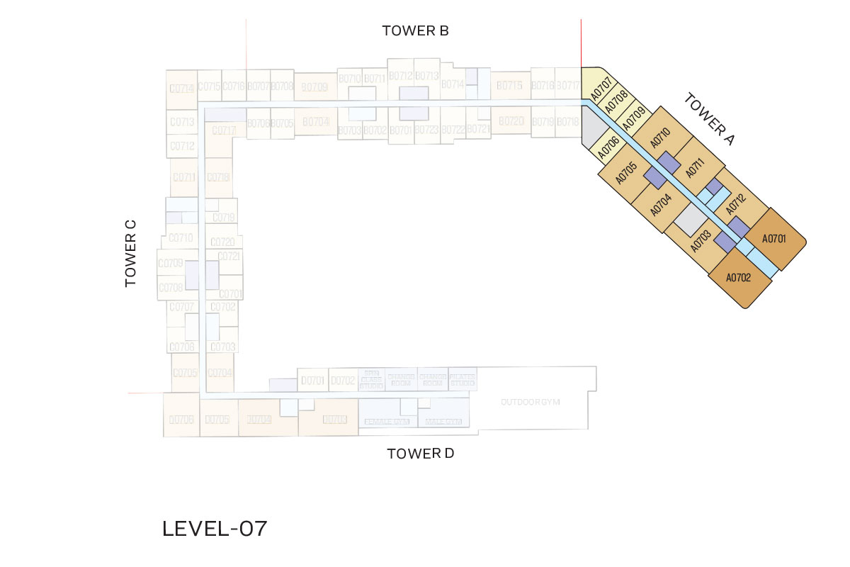 The Crest offer facilities: A terrace, BBQ Area, Fitness center, Kitchen, health club, kids play area, hall, gym, garden, and swimming pool.