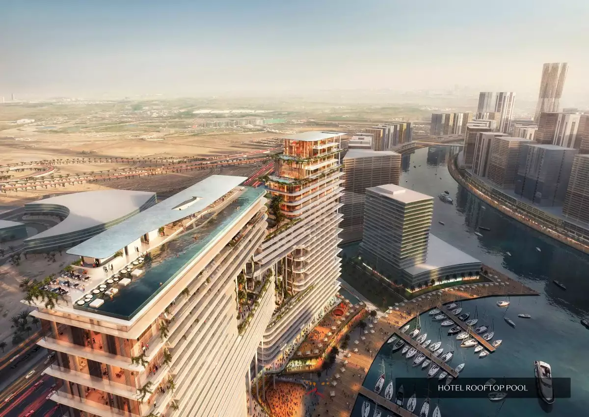 The world-famous Gilles & Boissier architectural firm, which is renowned for its excellence from 45 Park Lane (London) to Hotel Eden (Rome), skillfully designed the development. Situated in the center of Business Bay and only a short stroll from the Dubai Canal and its lovely promenade street, this iconic destination boasts exceptional hotel amenities and a singular collection.