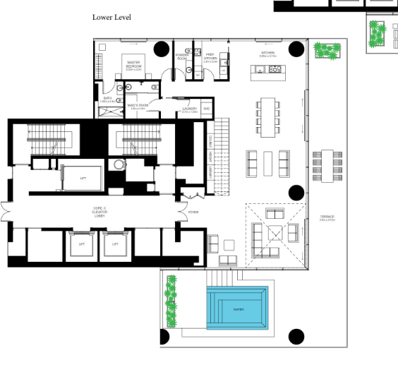 the One Palm Clubhouse with its fine-dining restaurant, indoor and outdoor swimming pools, outdoor cinema and BBQ area, cigar lounge, yacht club, and spa.