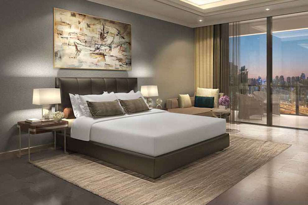 The Autograph Collection: Well-lit apartments with three, four, and five bedrooms are available in this amazing, spacious collection. There are a total of 21 units in the collection, including 3 units on levels 38, 40, and 42 and 18 units on levels 31 to 36. This opulent building offers a blend of classic and international characteristics, making it the epitome of luxury living. In this roomy bedroom with soft, ambient, and delicate textures, the beautiful urban alcove offers simple design elements.