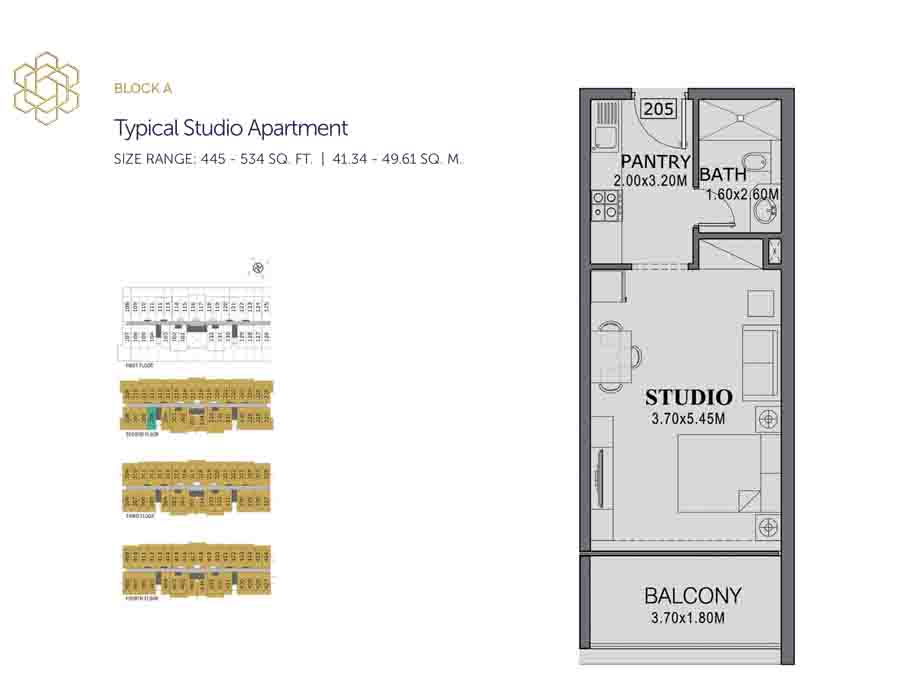 The Wings Block A is a five-storey residential building in The Wings by Al Mizan, Arjan, Al Barsha South 3, Al Barsha South, Dubai. The project was developed by Al Mizan and Pearl Global Assets Ltd.