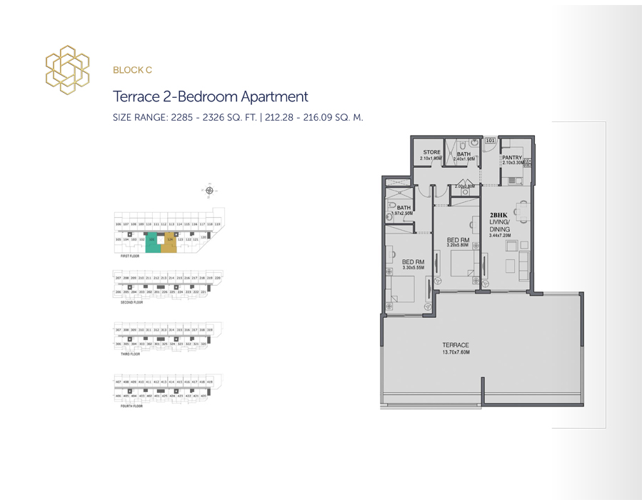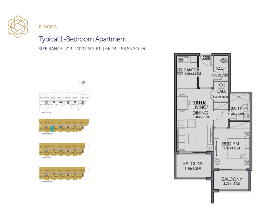 The Wings Block C is a five-storey residential building in The Wings by Al Mizan, Arjan, Al Barsha South 3, Al Barsha South, Dubai. The project was developed by Al Mizan and Pearl Global Assets Ltd.