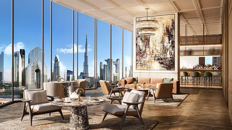Residents enjoy uninterrupted panoramic views of the Burj Khalifa, the Arabian Gulf, and the ever-evolving Dubai skyline. The design celebrates form and function, where expansive interiors, premium finishes, and soaring ceilings merge to create refined living spaces that are both timeless and contemporary.