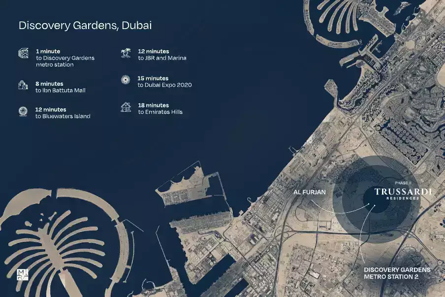 Trussardi Residences 2, which is situated in the coveted Al Furjan neighborhood, provides superior urban convenience and connectivity. Al Furjan is renowned for its lively, family-friendly ambiance, advantageous location, and simple access to Dubai's main attractions.