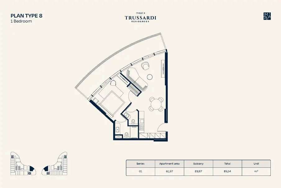 At Trussardi Residences 2, each unit radiates sophistication and individualized elegance. The interiors are thoughtfully chosen to showcase Trussardi's distinctive fusion of contemporary style and Italian refinement. What locals can anticipate: