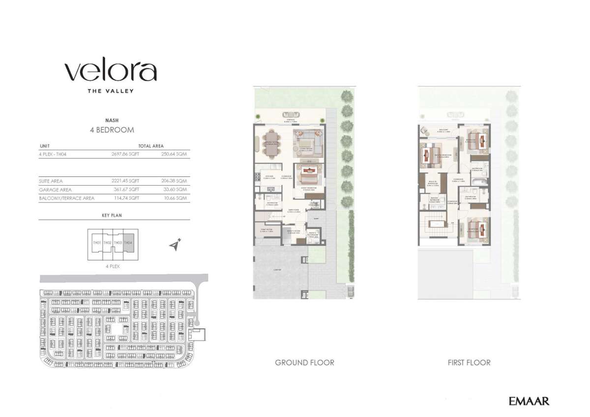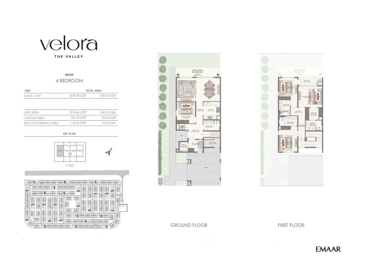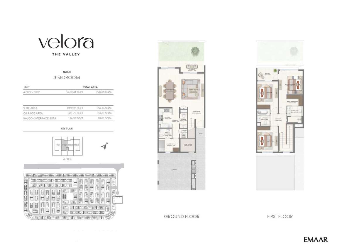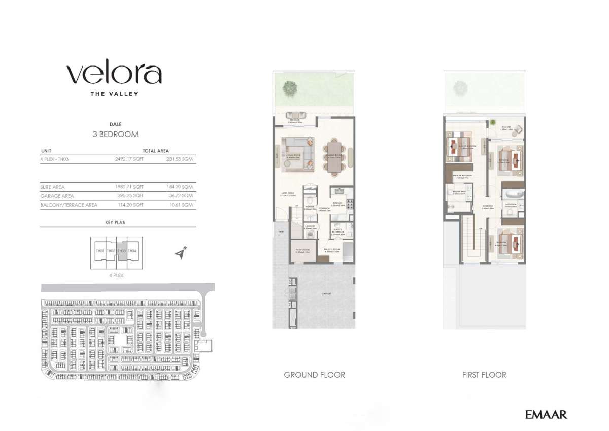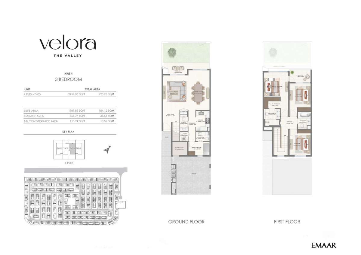 Emaar Properties presents Velora at The Valley Phase 2, a luxurious residential development featuring a small selection of townhouses with three or four bedrooms. This brand-new neighborhood in the heart of Dubai was inspired by the surrounding area's natural beauty.