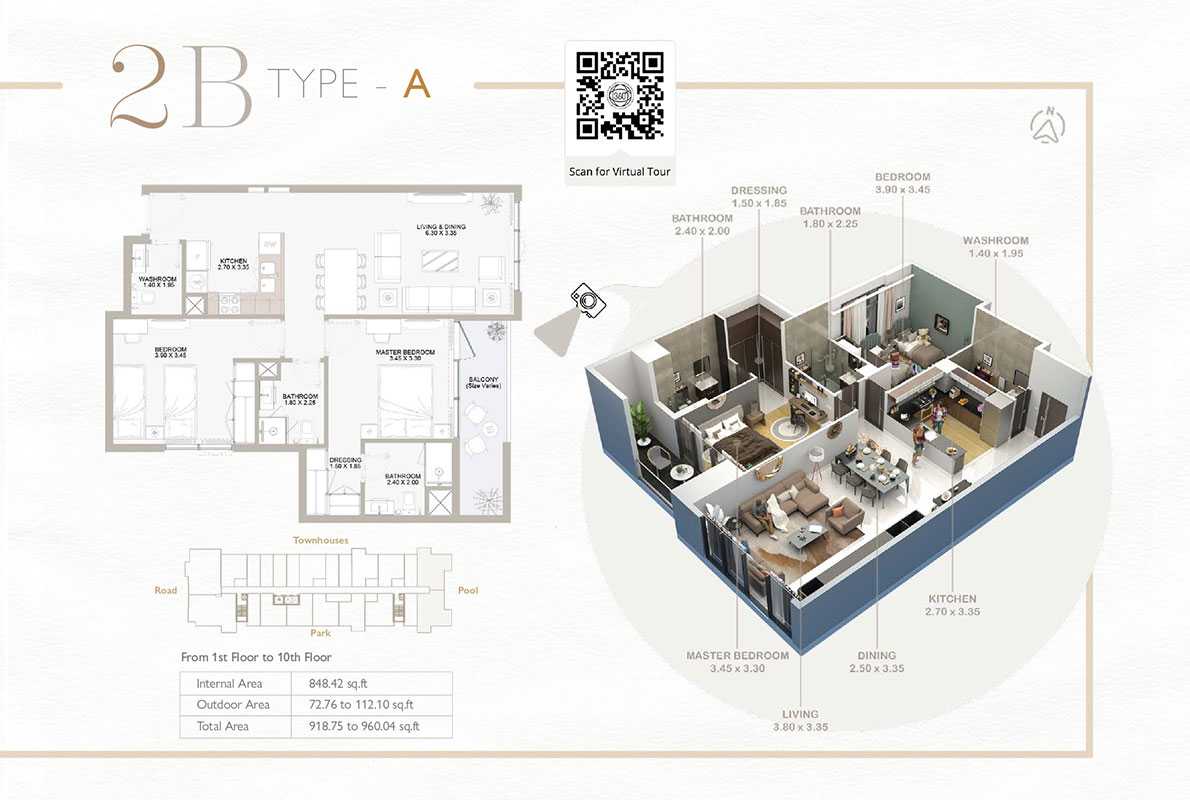 Located in Dubai Investments Park, a sizable neighborhood with a wealth of services and facilities, as well as close to several well-known commercial and economic hubs, this place is perfect for cherishing special moments with love and care. This location has some unstoppable beauty components that will allow you to experience life to the fullest and beyond your expectations.
