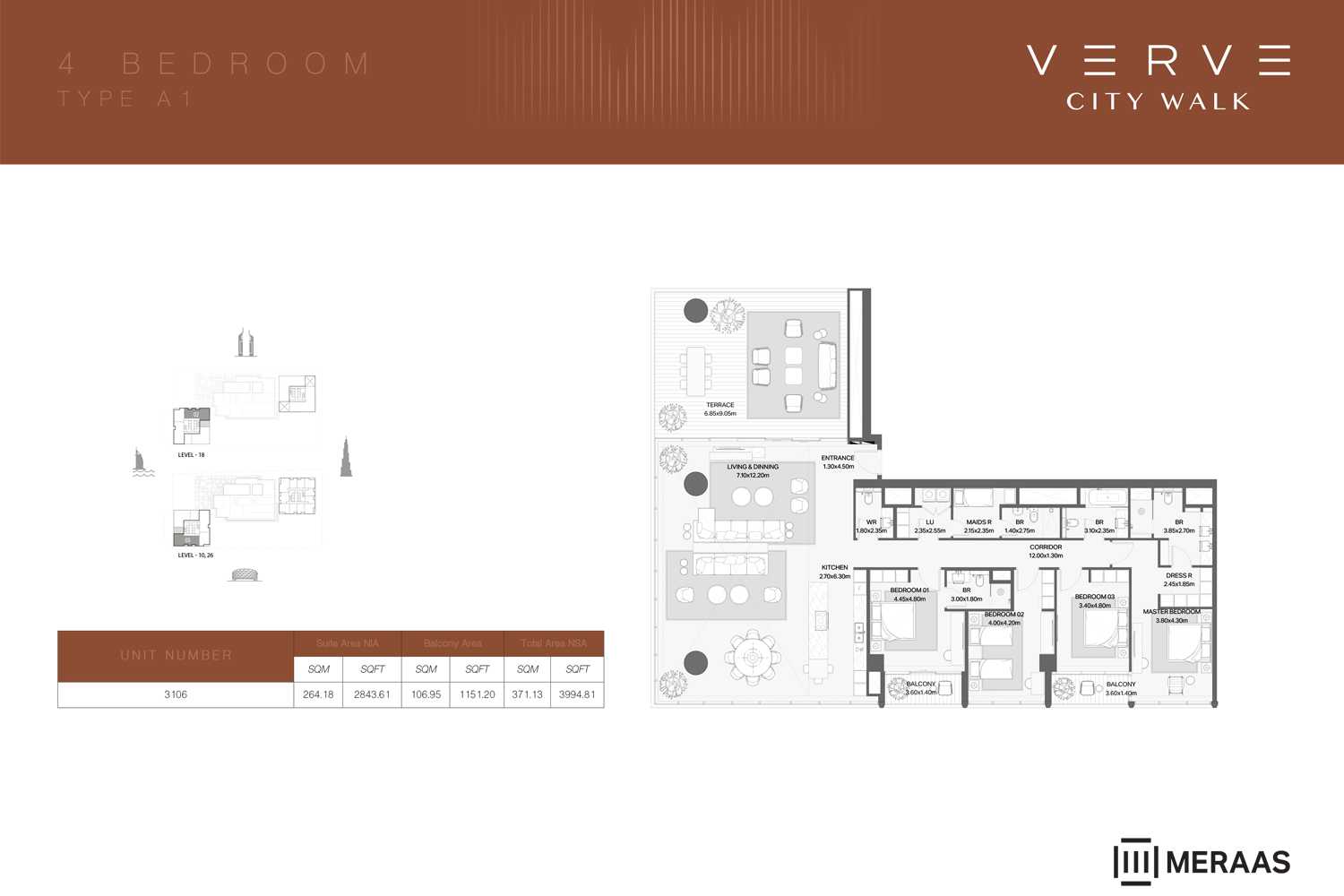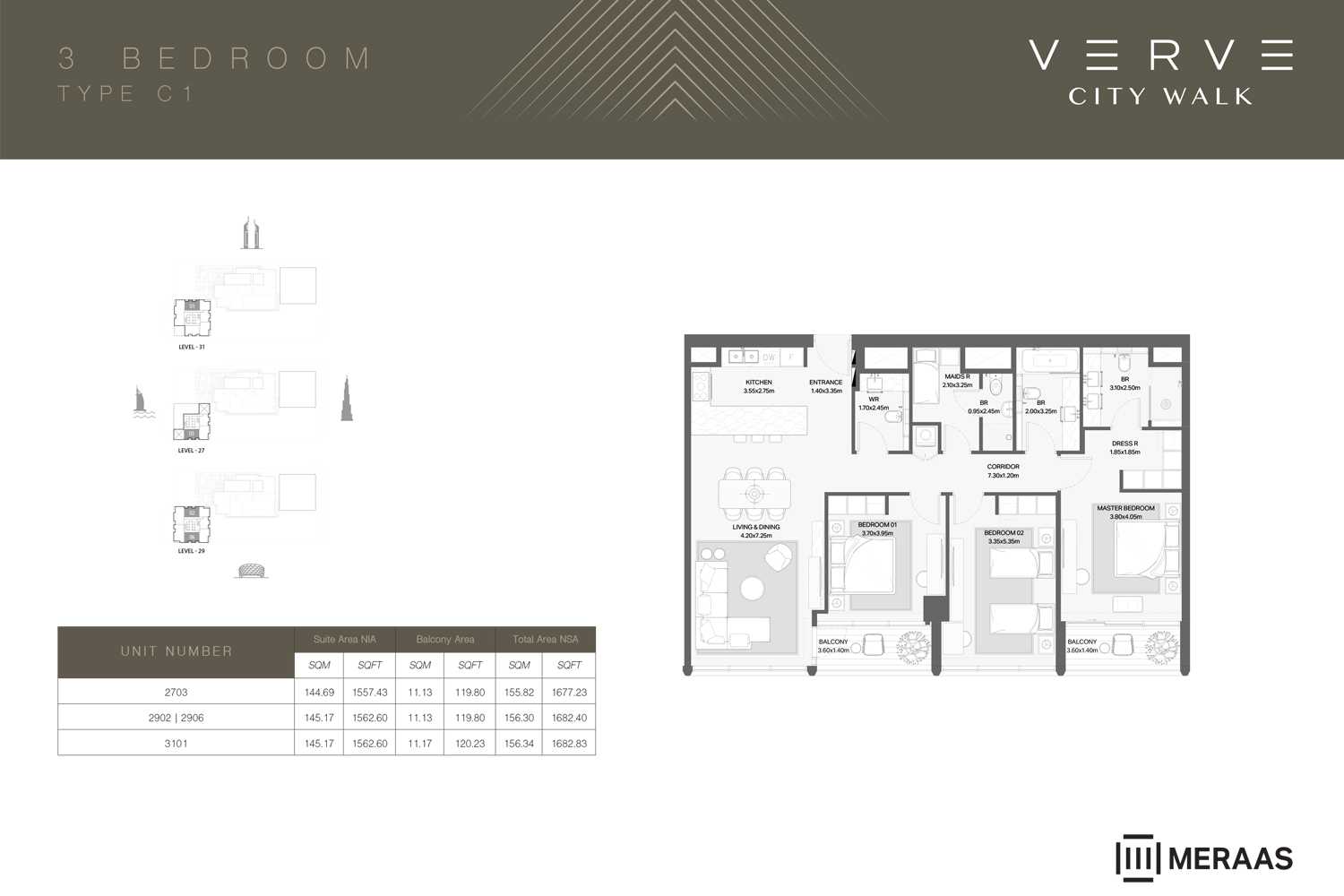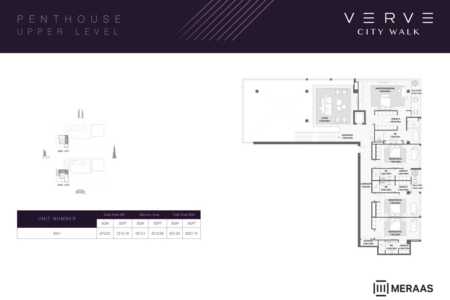 Tower A: Rises 36 floors high and features a modern penthouse with panoramic city views.