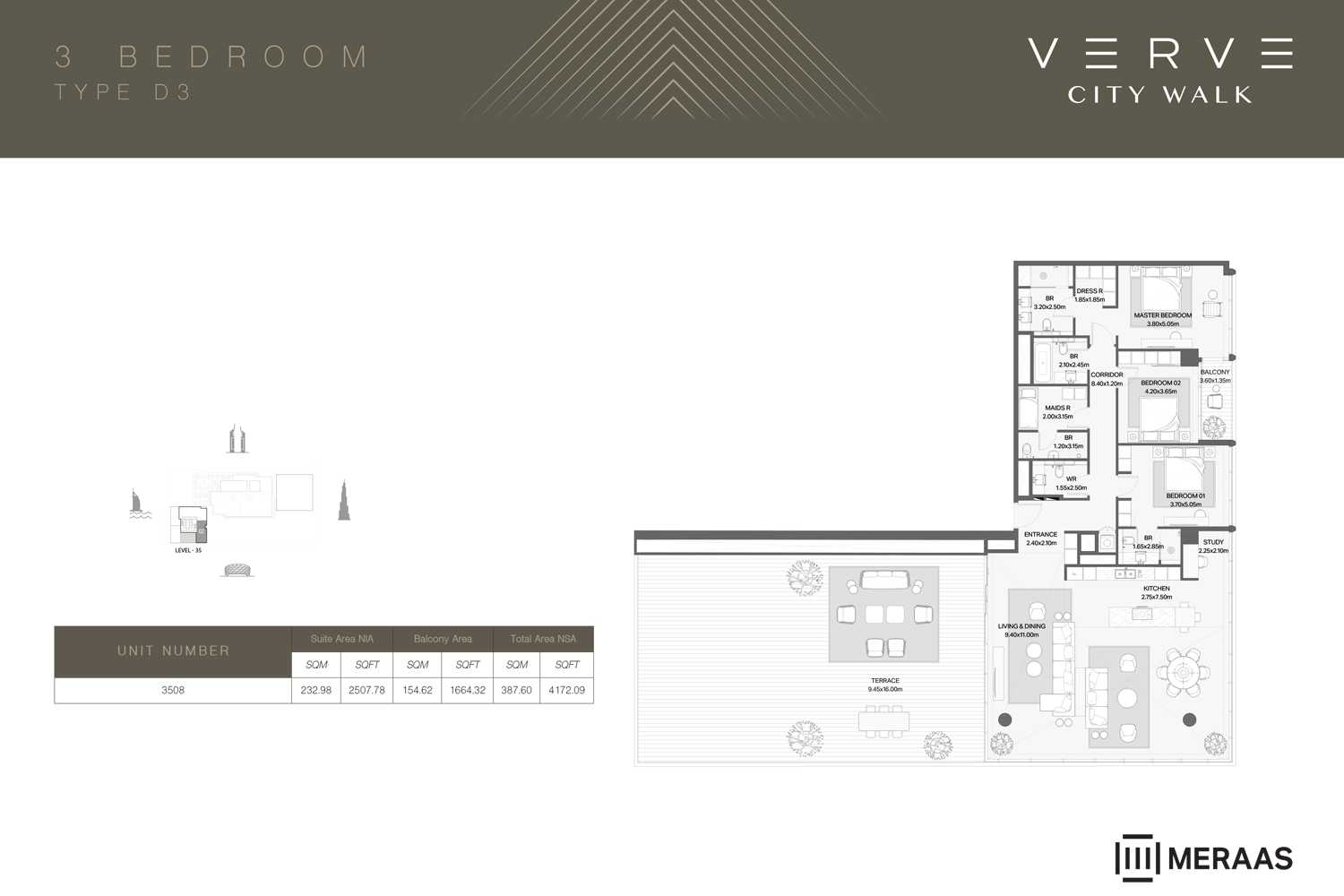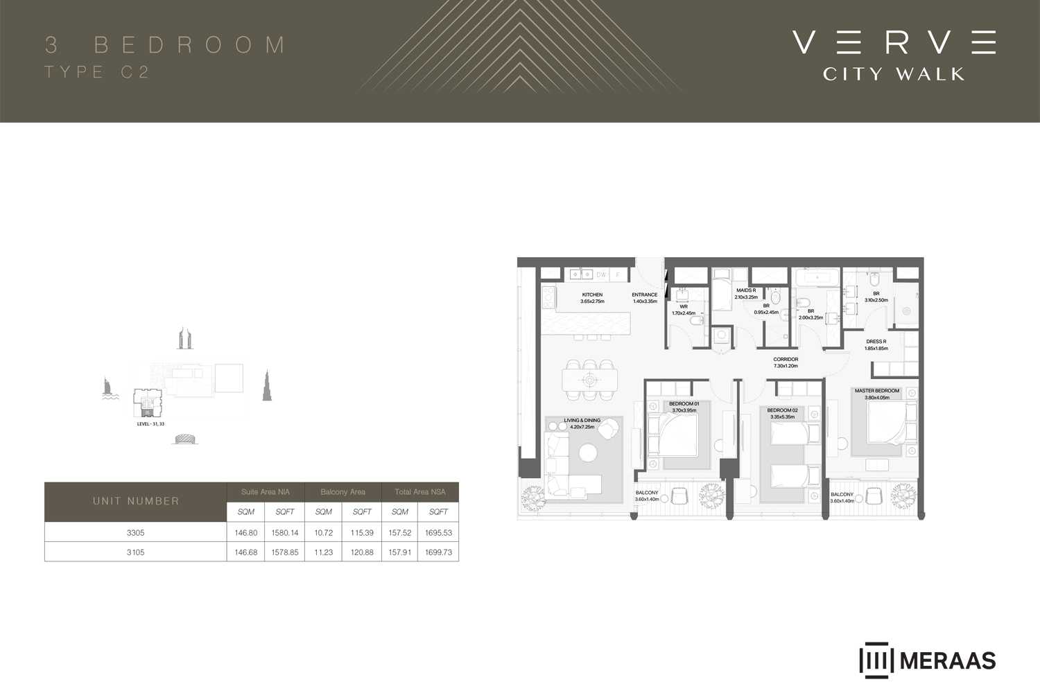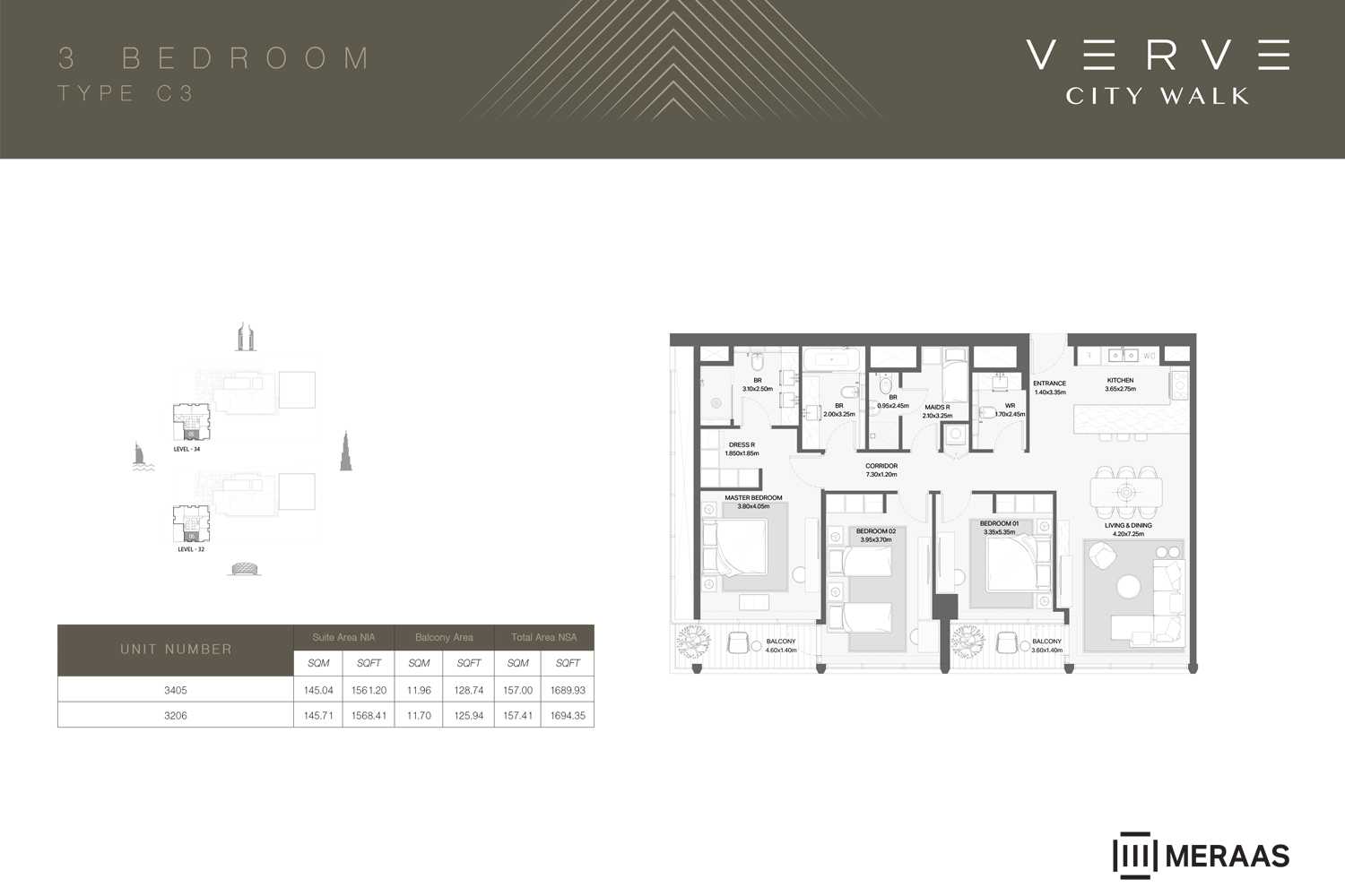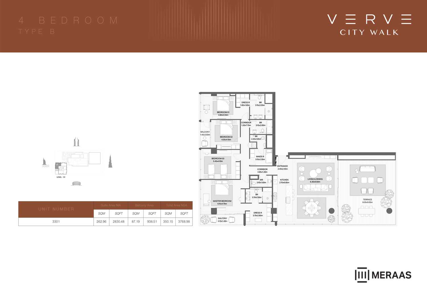 Tower A: Rises 36 floors high and features a modern penthouse with panoramic city views.