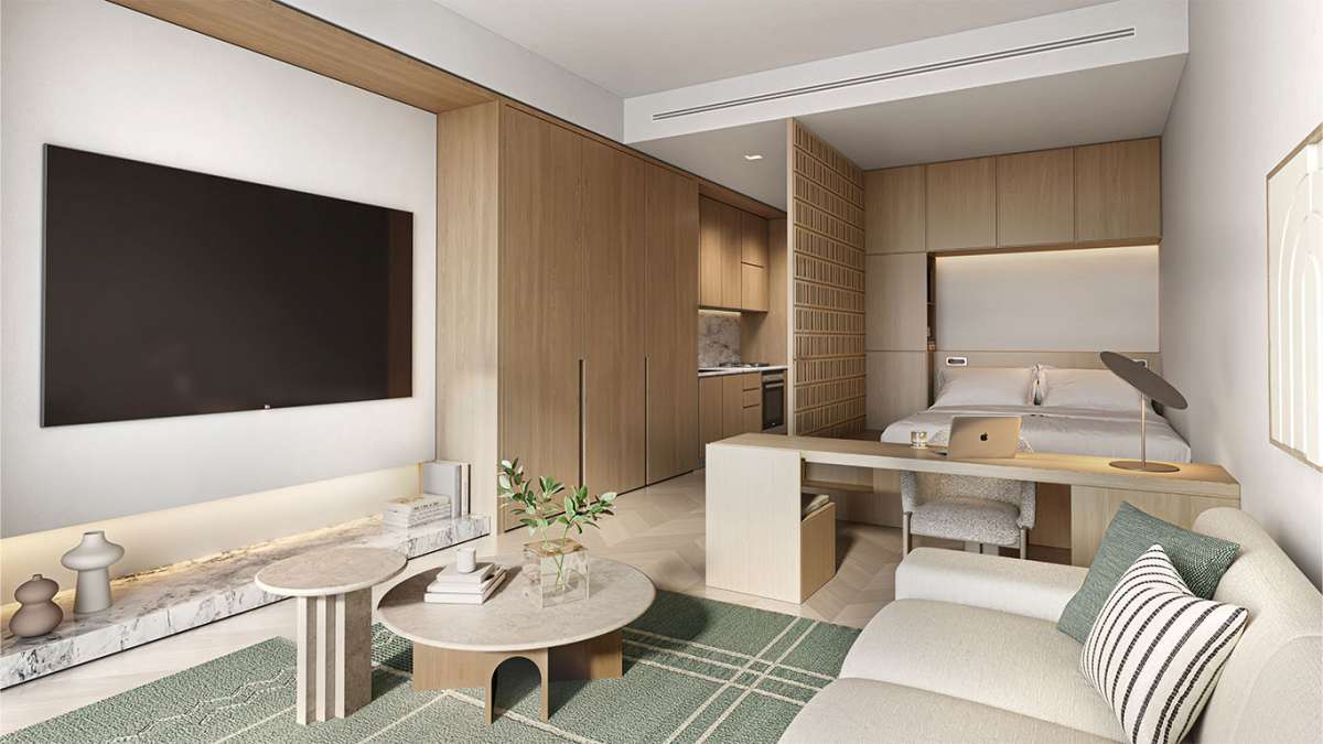 But the development's emphasis on community and well-being is what makes it so unique. Common areas are an extension of friendly, clean, and wellness-focused spaces. As people sit in beautifully manicured courtyards, go to the gym, or sit by themselves on a rooftop terrace, the development offers a seamless pace of communication with the neighborhoods. This is an actual location where individuals, families, and couples will reside and where the city is close by.