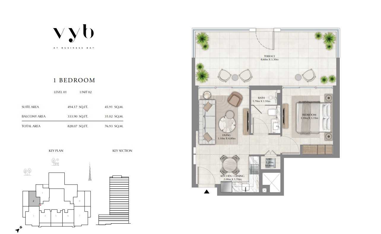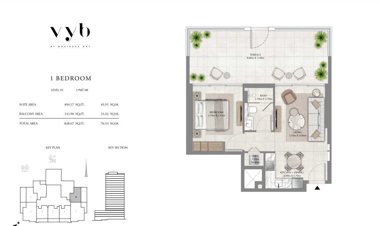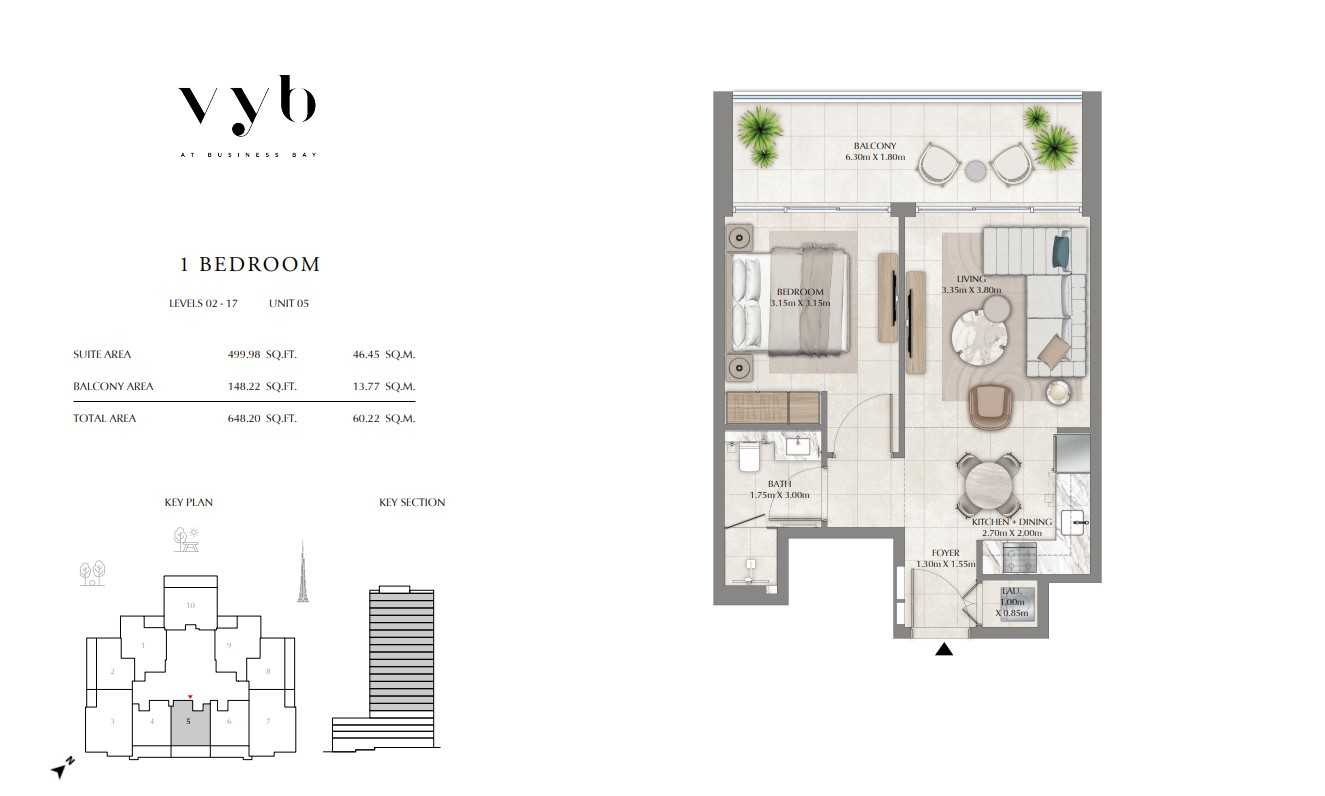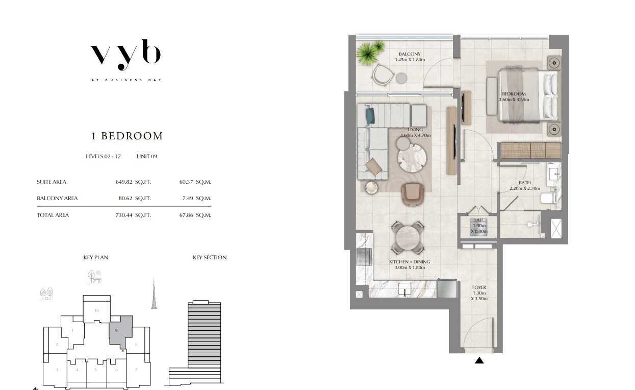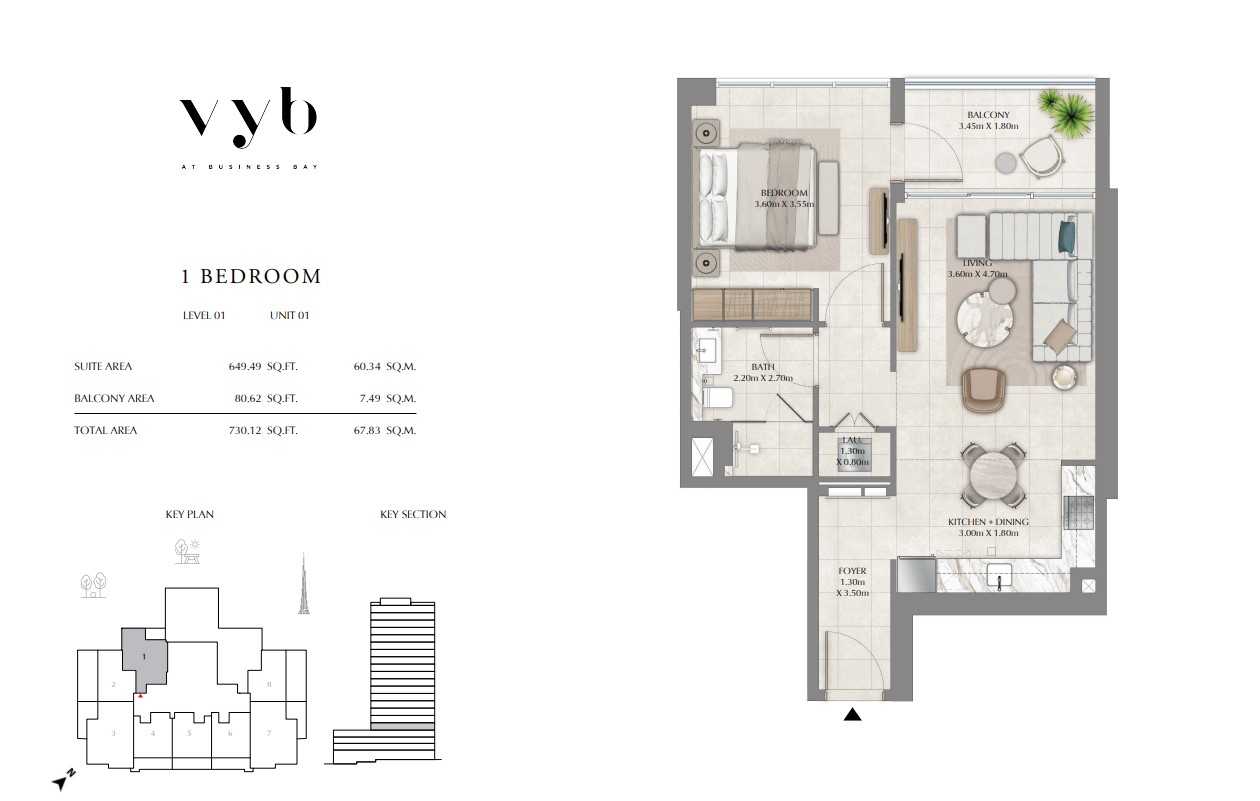 VYB features sleek, modern interiors with high-quality finishes, floor-to-ceiling windows, and thoughtfully designed layouts maximizing space and natural light.