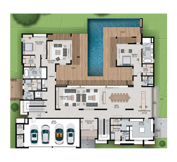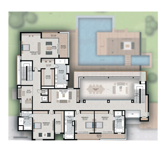 Dubai Canal increses the charm of Sobha Hartland. There are Water front villas there with 6 bedrooms. They have basements and G+1 Level. Private lift, swimming pool, Garage, Gym, Thetre gives you the luxurious life.