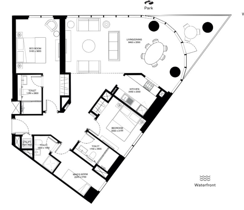 Waves Grande flanks the waterfront to create a clear line of sight as it’s located right at its edge while ensuring that the 1st tower continues to enjoy unobstructed views. The Waves Towers come together at a similar dynamic angle, perfectly harmonious with Sobha Hartland's orientation.