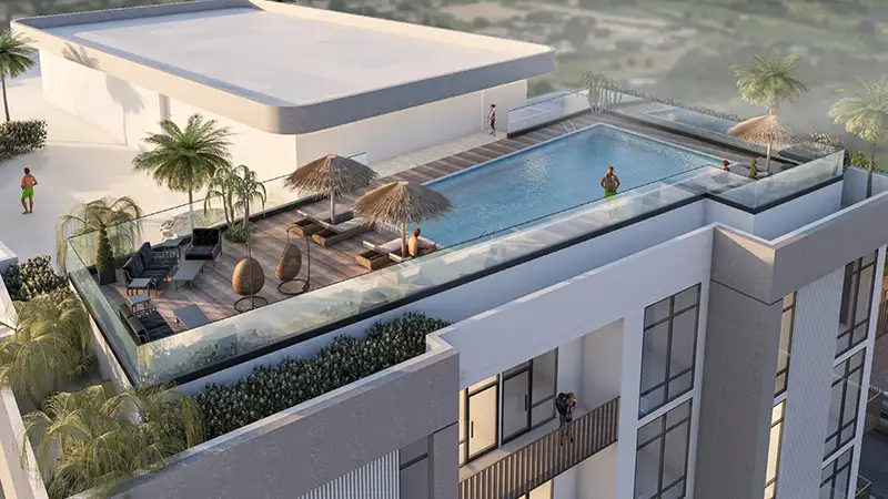 Exclusive amenities: Rooftop lounge, fully equipped gym, multipurpose hall, and children’s play zone
