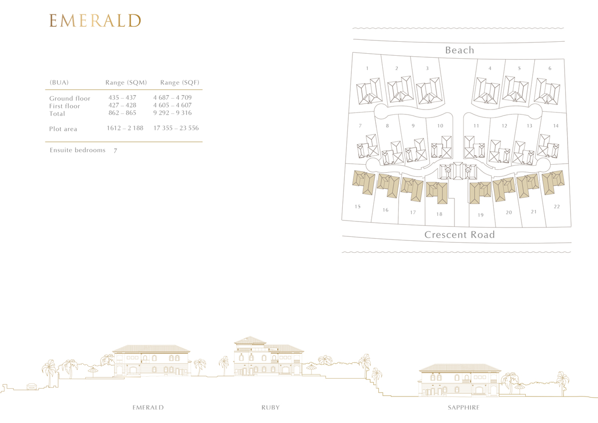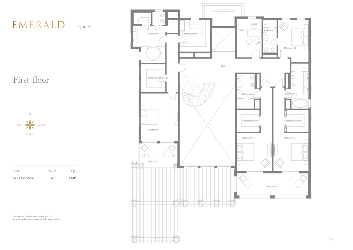 Emerald Type A features 7 bedroom villa and is comprised of Ground Floor and First Floor.