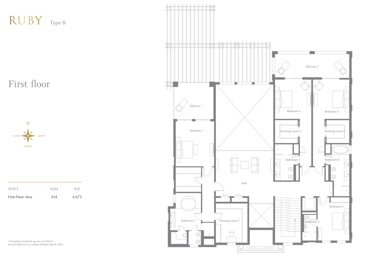 Ruby Type A features 7 bedroom villa and is comprised of Ground Floor and First Floor.