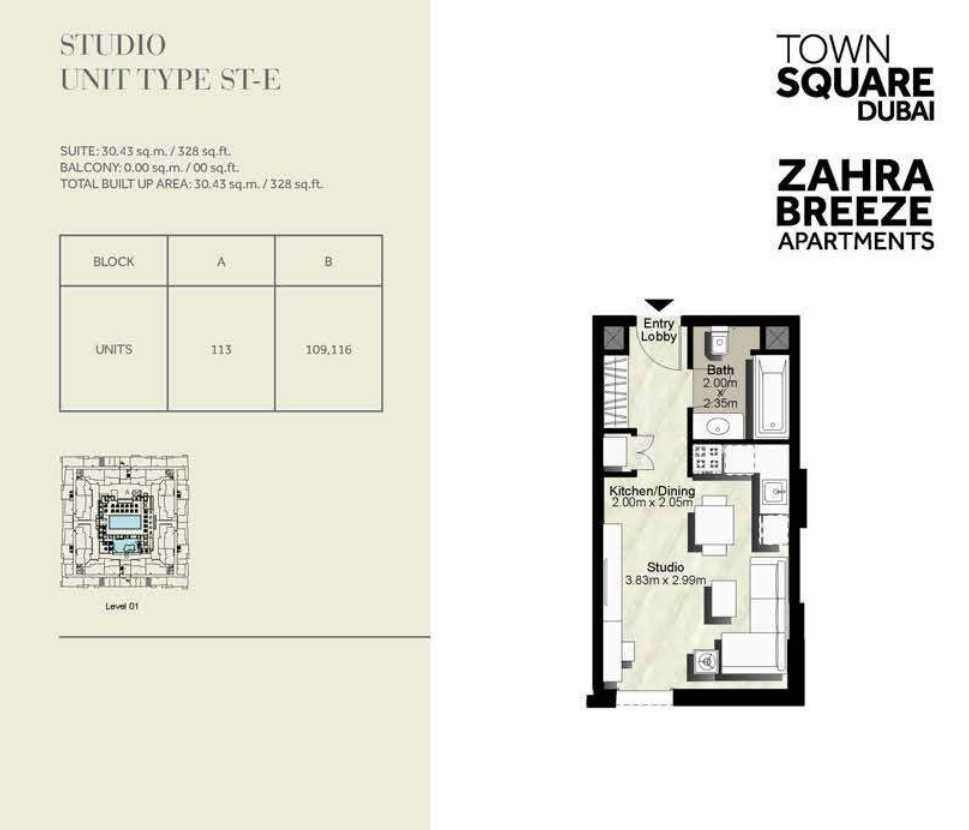 Location: Zahra Breeze Apartments is situated in Town Square, Dubai, a vibrant residential community on the outskirts of the city. Known for its contemporary and family-friendly environment, Town Square offers a suburban lifestyle surrounded by greenery and modern amenities.