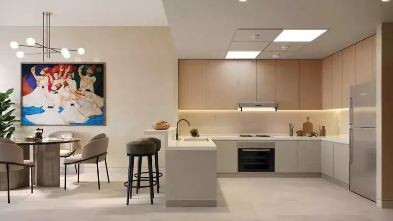 There are 73 well-thought-out apartments with one to three bedrooms and sizes ranging from 717 to 2,200 square feet within its G+6+R+Upper Roof construction. For the 1- and 2-bedroom versions, each unit is distinctively furnished with practical living areas; for the 3-bedroom flats, there is an additional maid's room, spacious cooking areas, and balconies or terraces. Additionally, each room is flooded with natural light thanks to double-glazed windows with sliding doors, custom-made wardrobes, luxury tile flooring beneath feet, and 3.2-meter-high ceilings that expand space upward. To make kitchens more lively, amenities like quartz stone surfaces and professional-grade appliances are installed. For a sophisticated experience, the bathrooms include Australian mixer sanitary ware and vitrified porcelain tiles.