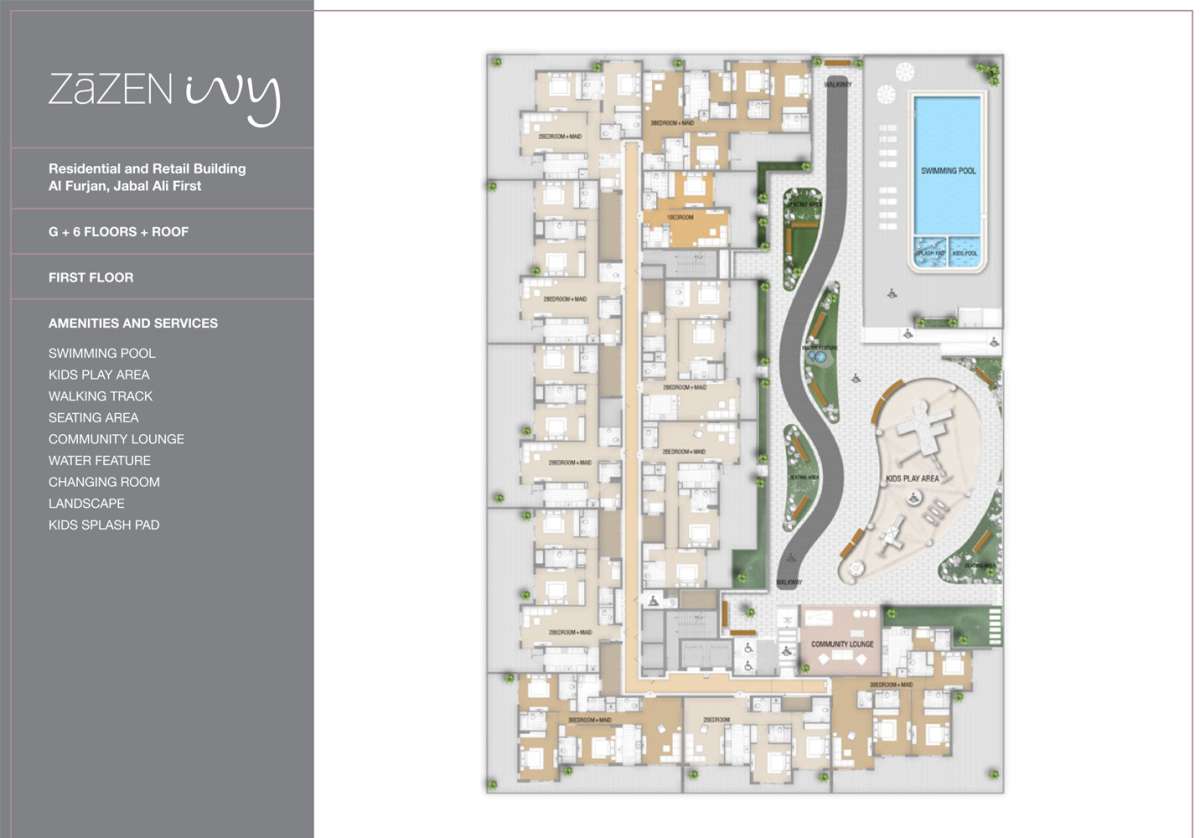 A creative six-story structure called Zāzen Ivy is being built in Al Furjan, Jebel Ali District. The ivy plant, renowned for its strength and grace, served as the inspiration for this project, which reflects the spirit of development, harmony, and vitality in every facet of its concept. It was created with a strong commitment to sustainable development and aims to incorporate environmentally friendly features into its design. In addition, the development includes Vastu principles in its design and aims for LEED certification. Highlights of this building include energy-efficient common areas that are partially powered by solar energy, high-speed elevators, and comprehensive security systems. Additionally, Wi-Fi in the communal areas and pet-friendly policies make for great extra living.