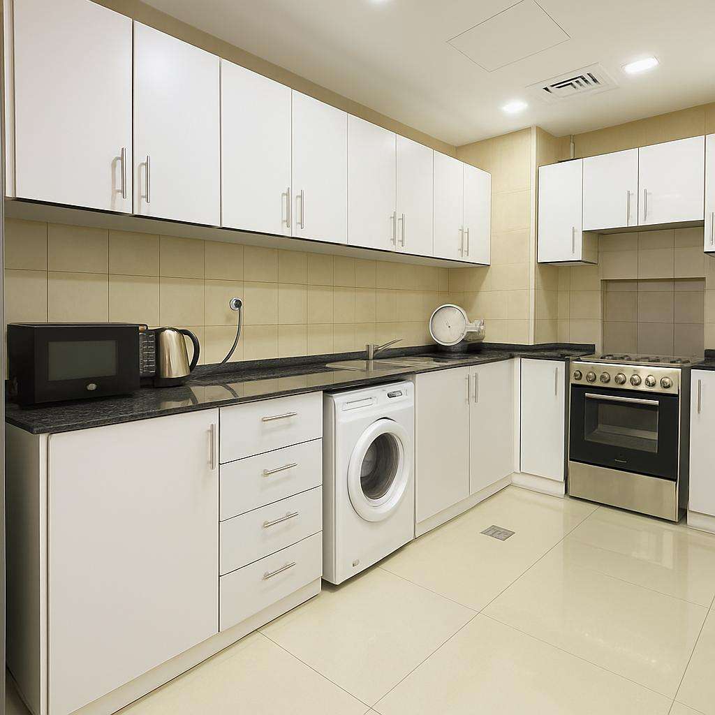 - Functional kitchen with appliances